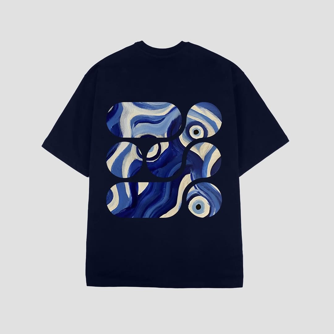 The Nazar symbol is believed to shield its wearer from negative energies and envious gazes. Our T-shirt features a contemporary design of the Nazar, reimagined while retaining its timeless significance.